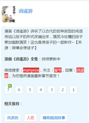 2025-07-24 02:35 开始阅读 微信阅读 简介:《逍遥游》漫画是使徒子的最新力作,将古代各式各样的典故、成语、传说,改用现代网络段子和搞笑冷吐槽的方式将其描述出来,更加幽默易懂。让人开怀大笑的同时学习了其知识,寓教于乐 寓学于乐。