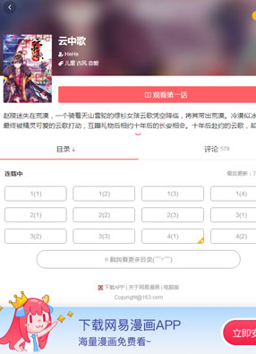 2025-07-31 01:32 开始阅读 微信阅读 简介: 《云中歌》漫画简述:一次意外,赵陵迷失在荒漠中,但命不该绝,一个骑着天山雪驼的绿衫女孩云歌凭空降临,将其带出荒漠。起初只是为了感谢,可经过短暂的相处,冷漠似冰的他最终被精灵可爱的云歌打动,互赠礼物后相约十年后的长安相会。却不想,十年后,赴约的云歌卷入了一场宫廷王位之争。